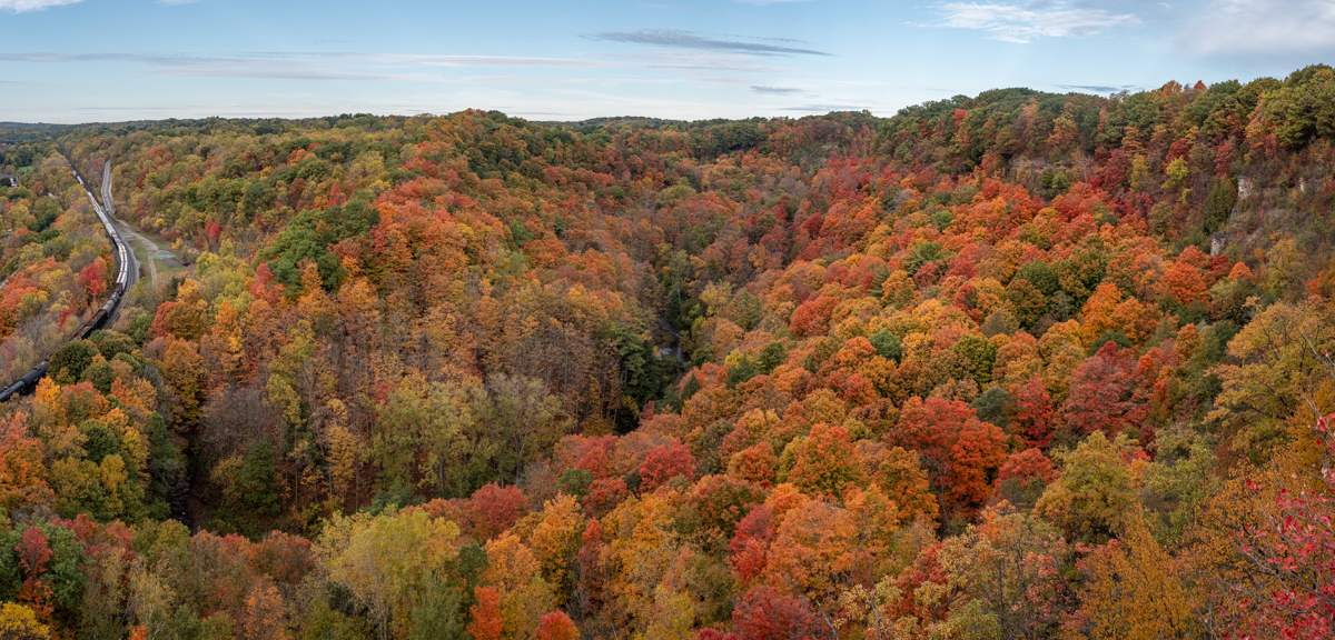 Der Dundas Peak ist der ideale Ort für Herbstliebhaber und Train Spotter. Da es von beiden recht viel gibt, ist es dort insbesondere an schönen Oktoberwochenenden entsprechend überlaufen, und der Besuch bedarf einer Reservierung.