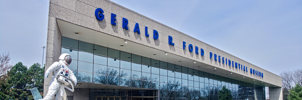 Obwohl Bibliothek und Museum über Gerald Ford zusammengehören, liegen sie in zwei unterschiedlichen Städten. Das Museum befindet sich in Grand Rapids im Bundesstaat Michigan, der Heimatstadt des Präsidenten, und die Bibliothek ist im 200 Kilometer entfernten Ann Arbor untergebracht.
